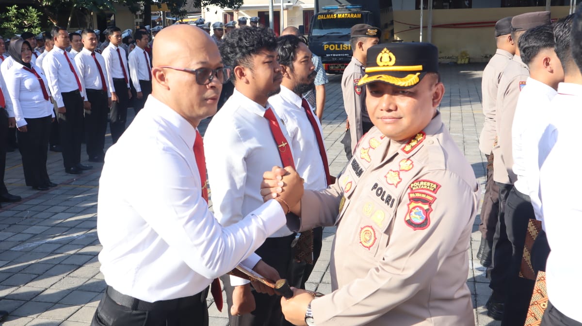 Mataram NTB, Hukrimsus.com — Kapolresta Mataram Kombespol Dr. Ariefaldi Warganegara SH.,SIK.,MM.,CPHR.,CBA.,memberikan reward berupa penghargaan Police of The Month kepada para personel Polresta Mataram yang telah menunjukan dedikasi dan loyalitas dengan baik.