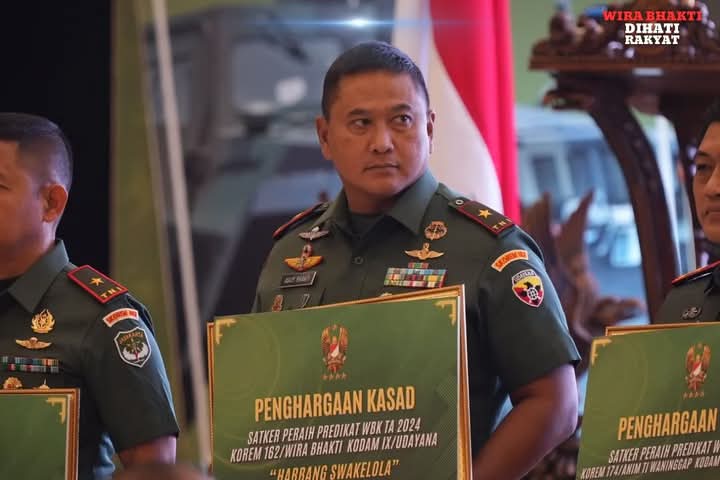 Jakarta, Hukrimsus.com — Komandan Korem 162/Wira Bhakti, Brigjen TNI Agus Bhakti, S.I.P., M.I.P., M.Han., menerima penghargaan Wilayah Bebas dari Korupsi (WBK) dari Kepala Staf Angkatan Darat (Kasad) Jenderal TNI Maruli Simanjuntak, M.Sc. di Balai Kartini, Jakarta (03/02/2025).
