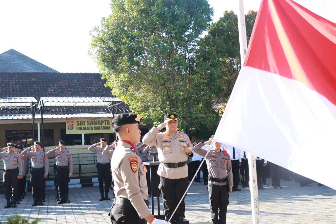 Kapolresta Mataram Kombes Pol Dr Ariefaldi Warganegara SH SIK MM CPHR CBA dalam amanatnya membacakan teks sambutan dari Menteri Komunikasi dan Informatika RI