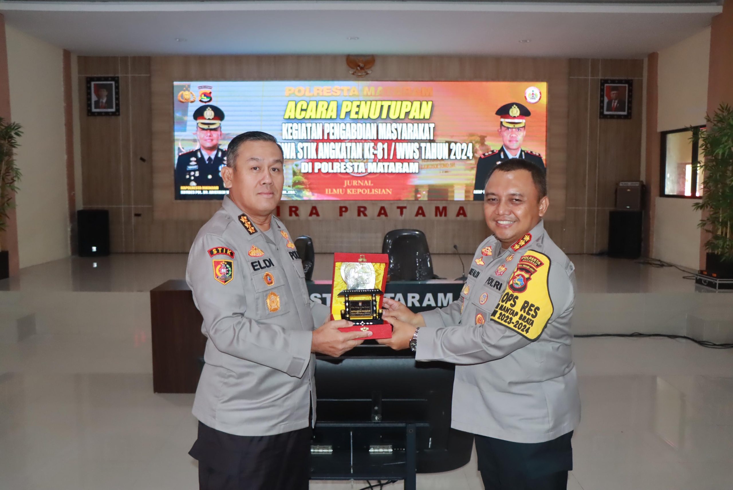 Kegiatan dilanjutkan dengan Penyerahan Cinderamata dari Mahasiswa STIK-PTIK kepada Kapolresta Mataram dan sebaliknya serta diakhiri dengan foto bersama.TutupNya RED/A.setiawan