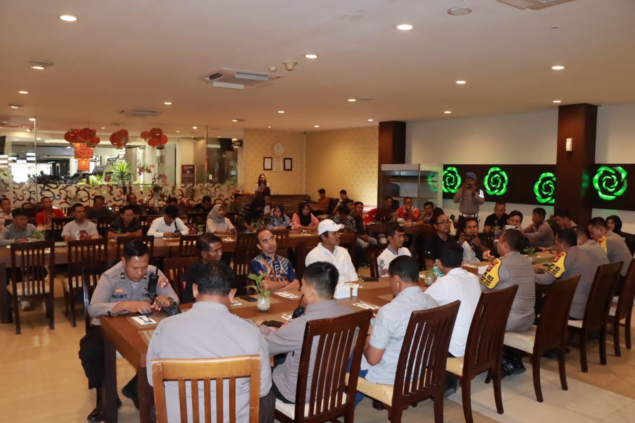 Kombes. Pol. DR. Ariefaldi warganegara, SH,SIK,MM,CPHR,CBA., dengan para awak media yang berlangsung di Restoran Hotel Lombok Plaza, Sabtu (27/01/2024).