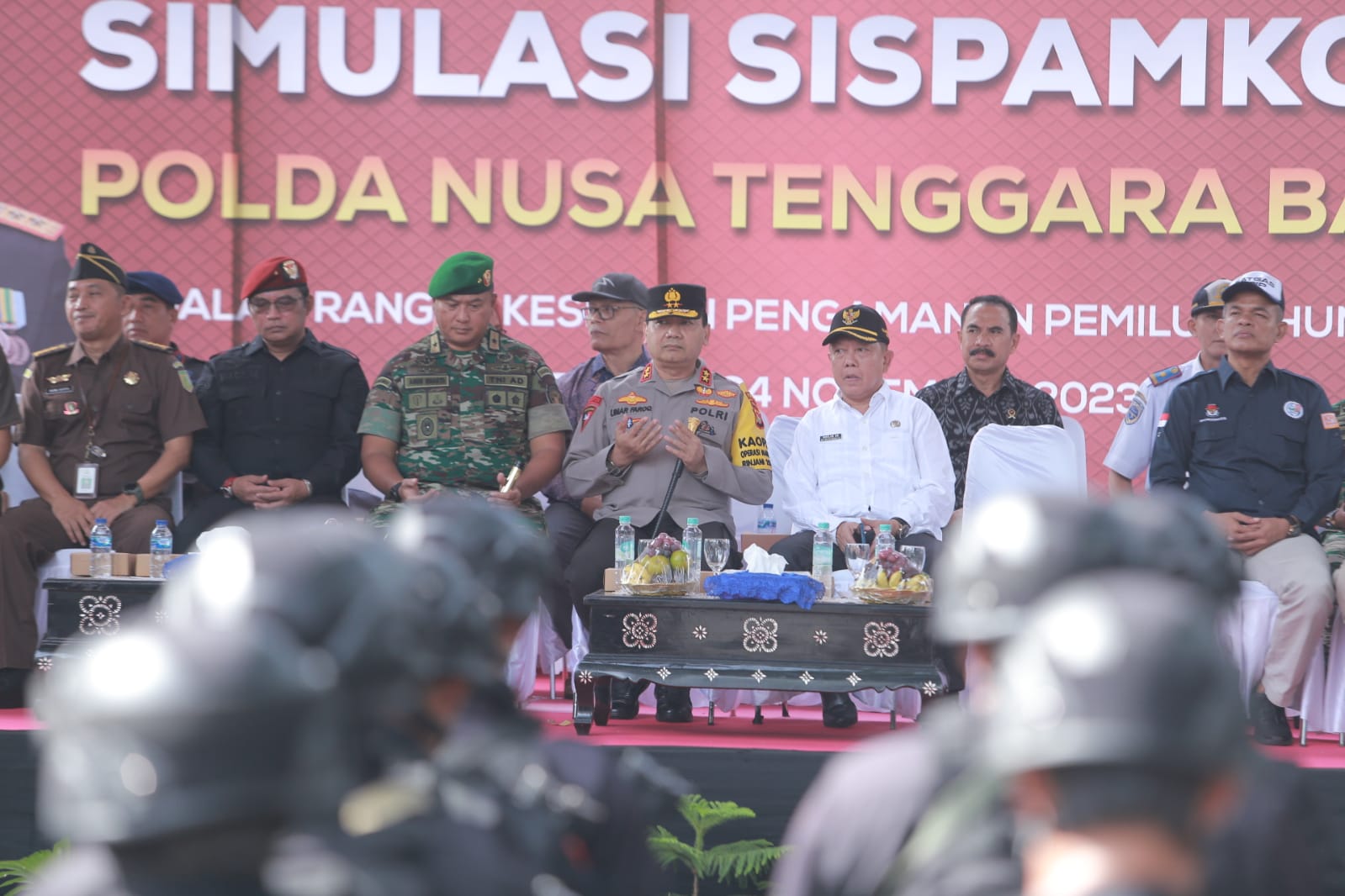 Simulasi tersebut disaksikan Kapolda NTB, Danrem 162/WB, Pj Gubernur NTB, Kepala Kesbangpol NTB, Kepala Kanwil Kemenkumham NTB, Kejati NTB, Kejari Mataram, Ketua KPU Provinsi NTB dan Kota Mataram, Ketua Bawaslu NTB dan Kota Mataram, segenap PJU Polda NTB, wali kota Mataram, Ketua DPRD Kota Mataram, segenap Kapolres/ta Se Jajaran Polda NTB, serta para undangan tokoh masyarakat, Tokoh Agama, tokoh politik .
