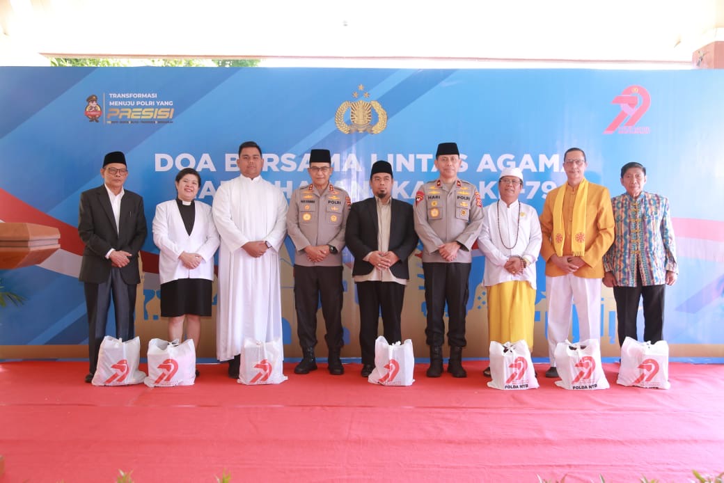 Doa bersama ini dihadiri langsung oleh Kapolda NTB Irjen Pol. Hadi Gunawan, S.I.K., Wakapolda NTB, pejabat utama Polda, serta tamu undangan dari lintas institusi, di antaranya Wakil Gubernur NTB, Ketua DPRD NTB, Wakil Wali Kota Mataram, Danrem 162/WB, Danlanal Mataram, Danlanud ZAM, Ketua FKUB NTB, serta tokoh-tokoh agama dari berbagai kepercayaan yang ada di NTB.