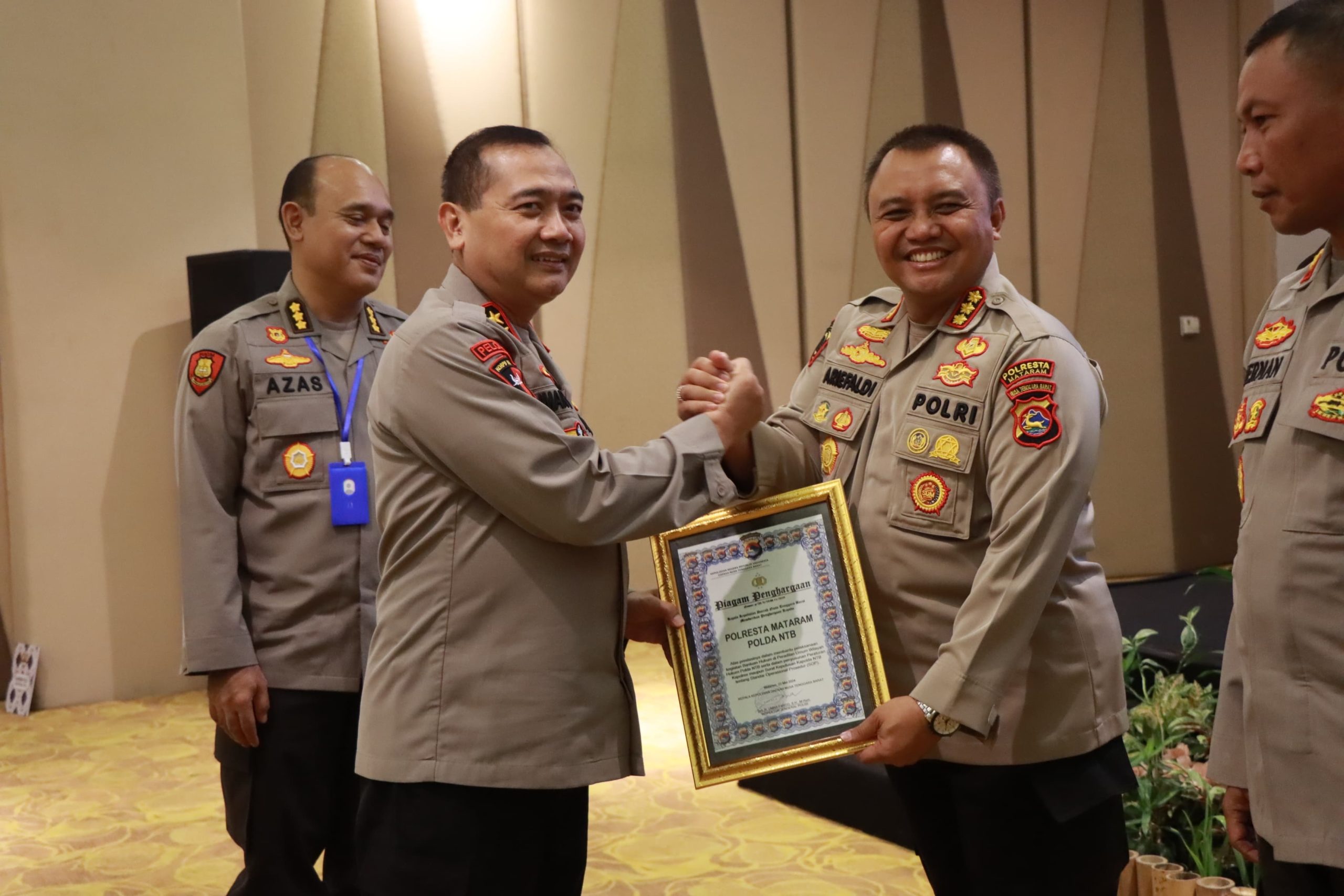 Kapolresta Mataram Kombes Pol Dr Ariefaldi Warganegara SH SIK MM CPHR CBA usai menerima penghargaan mengatakan bahwa terimakasih atas penghargaan yang telah diberikan oleh Bapak Kapolda NTB dan tentunya ini akan memberikan semangat khususnya kepada seluruh personel Polresta Mataram.