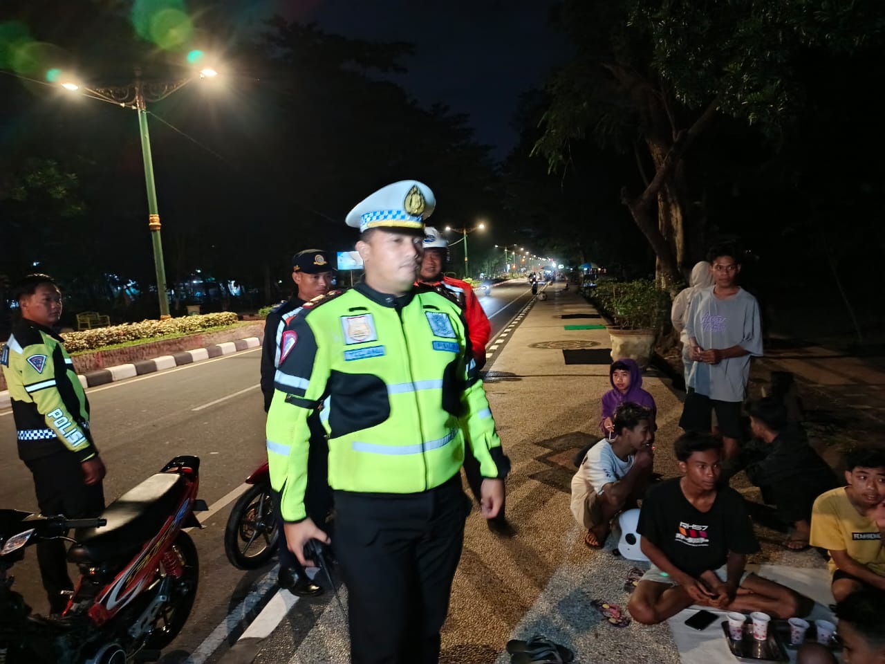 “Untuk mengantisipasi hal-hal yang tidak diinginkan, para muda mudi yang masih nongkrong di pinggir jalan dihimbau untuk segera bubar, karena dikhawatirkan dapat mengganggu kenyamanan serta situasi Kamtibmas, “ucapnya.